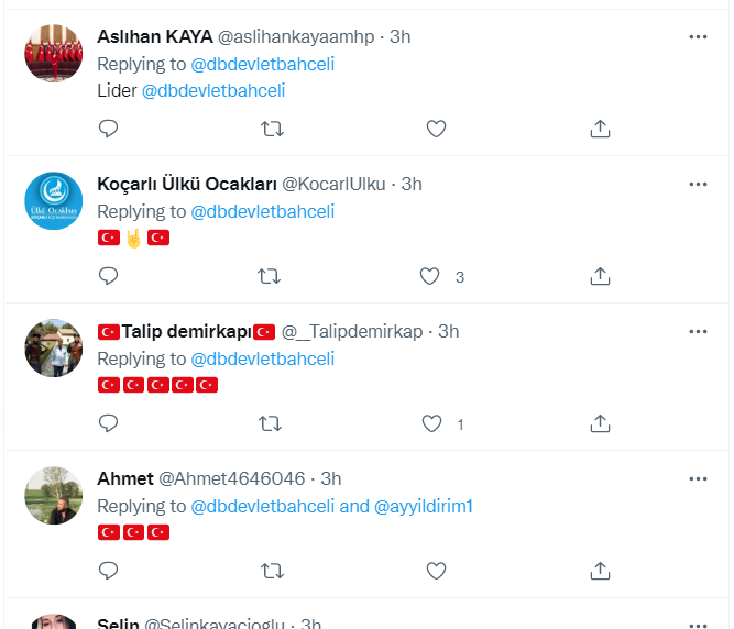 Bahçeli’nin paylaşımlarına ülkücü hesaplardan beğeni yağdı.